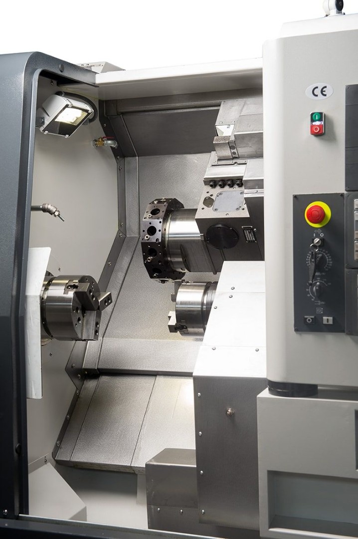 Двухшпиндельный станок T250- MY2S RAIS предназначен для выполнения разнообразных операций по токарной обработке среднегабаритных деталей и компонентов в серийном производстве.Высокая производительность, стабильность и скорость всех операций по токарной обработке материалов различного типа.Прецизионный шпиндельный узел, смонтированный на температурно-стабилизированном и оребренном корпусе при помощи подшипников класса Р4, обеспечивает минимальное радиальное биение и минимальный осевой зазор. Гарантированная высокая скорость резания без вибрации.Прецизионные шариковинтовые пары (класс Р3) с двойными гайками с предварительным натягом и минимальным люфтом. Высокая точность позиционирования деталей и продолжительный срок службы. Минимальные температурные и вибрационные отклонения.